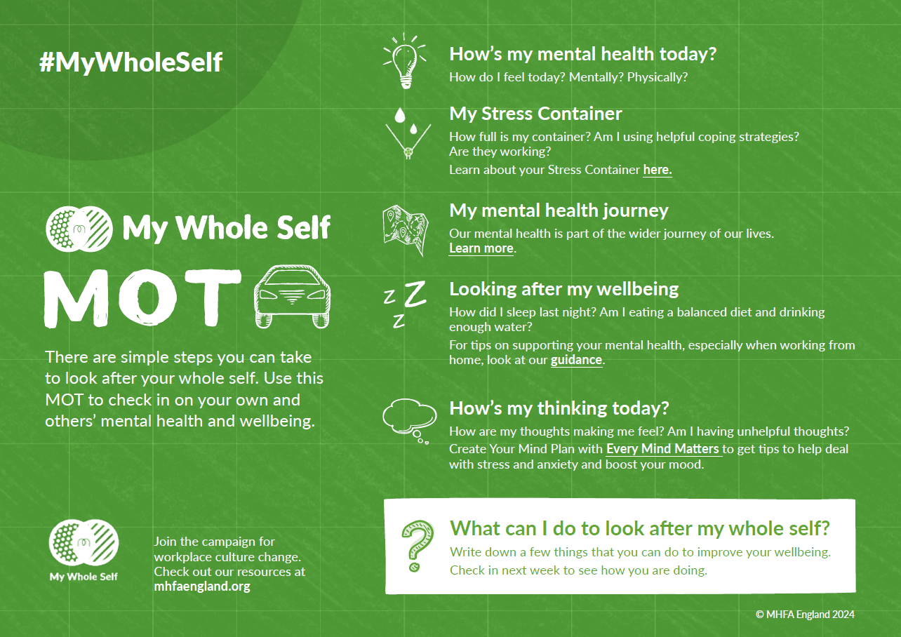 You can speak to an MHFA about anything affecting your mental wellbeing, including: